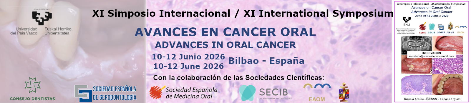 Desde el Departamento de Estomatología y el Servicio Clínica Odontológica de la Universidad del País Vasco/Euskal Herriko Unibertsitatea (EHU), hemos organizado el XI Simposio Internacional Avances en Cáncer Oral titulado “Mejoremos el pronóstico del cáncer oral” en formato presencial, que celebraremos del 10 al 12 de Junio de 2026, en el Paraninfo del Bizkaia Aretoa de la EHU en Bilbao (España).